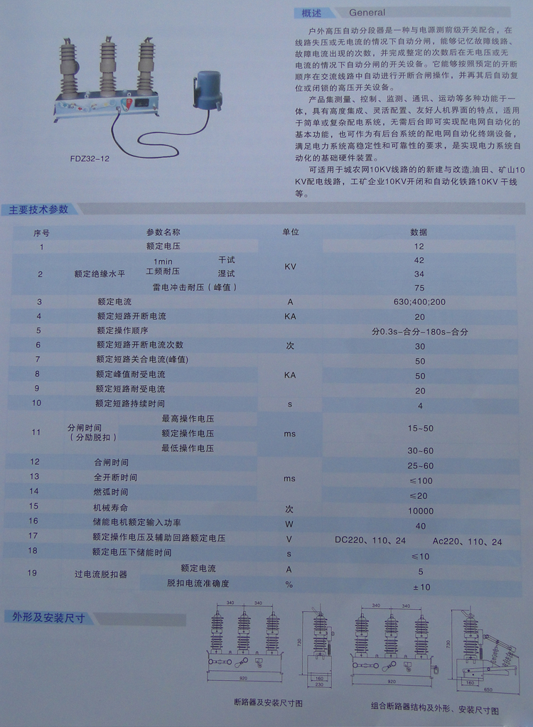 FDZ32-12系列户外高压自动分段器