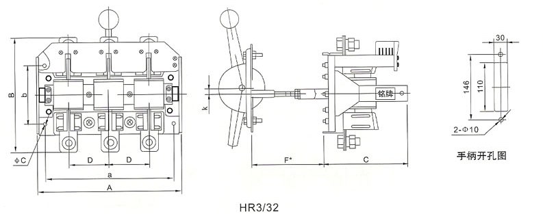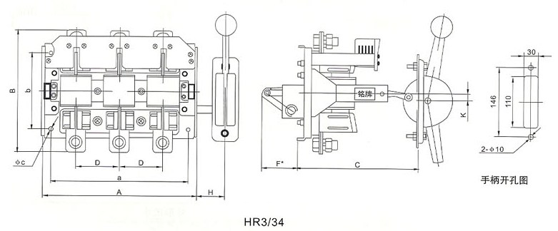 HR3系列熔断器式刀开关适用于交流50Hz、400V,额定电流至1000A的配电系列中作为短路保护和电缆、导线的过载保护之用。在正常情况下,可供不频繁的手动接通和分断正常负载电流与过载电流,在短路情况下,由熔体熔断来切断电流。