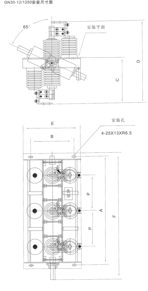 GN30-12型旋转式户内高压隔离开关是一种旋转触刀式的新型隔离开关,主要结构是在三相共底架的上、下两个平面上,固定两组绝缘子及触头,通过旋转触刀,从而实现开关的分合闸。