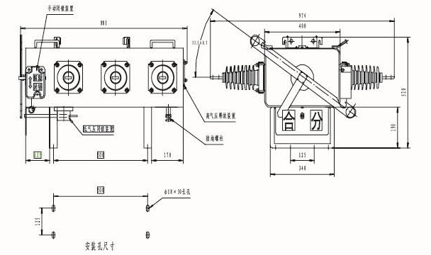 开关具有低气压闭锁报警装置和手动闭锁装置。