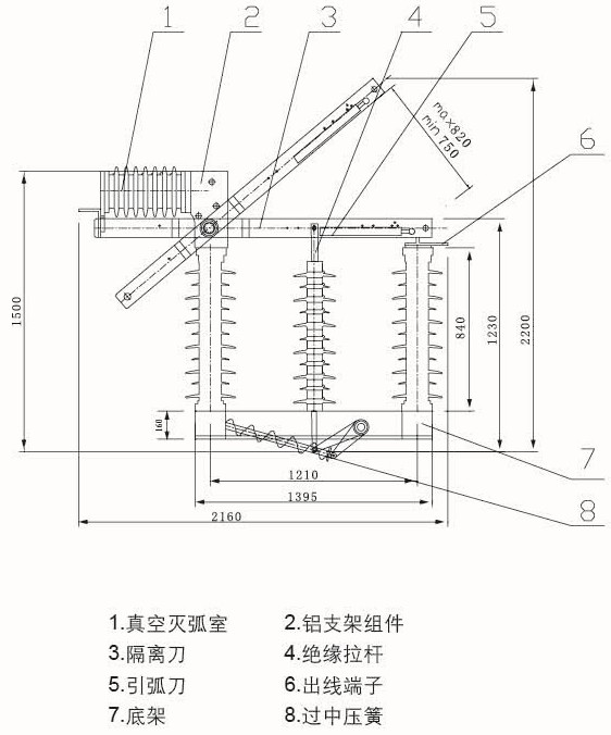 FZW□-72.5/1250-25户外高压真空负荷开关是综合国内现有开关生产的成熟经验及国外先进技术设计制造的新型负荷开关。本负荷开关由隔离闸刀、真空灭弧室及操作机构等部件组成。采用真空灭弧室原理,具有灭弧能力强,性能可靠,寿命长,体积小,无爆炸危险,不污染等优点。配套相应的真空负荷开关可用于电力、冶金、矿山、化工等部门的输配电系统中,作控制设备用,特别适合需频繁操作的场所。
